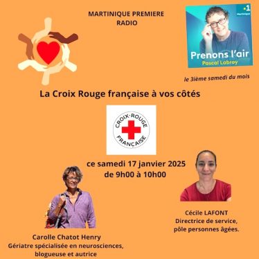 Carolle Chatot-Henry et Pascal Labroy nous font le plaisir d’interroger Mme Lafont Marie – Cécile sur les différentes missions et actions sur le territoire martiniquais. Des contacts donnés à des adresses citées … un réel mémo pour aider la population. Belle écoute à chacun pour ce podcast “La Croix Rouge à vos côtés”.