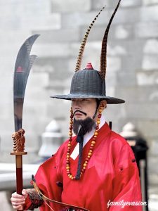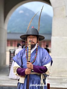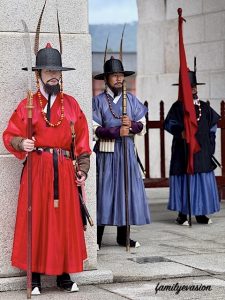 Construite en 1395, la porte Gwanghwamun, me surprend par sa relève de gardes en costumes traditionnels. Puis immobiles comme des statues, que cinq siècles d histoire n’auraient pas gommé…