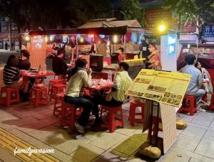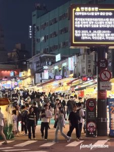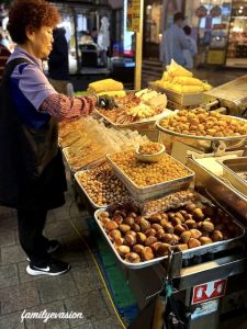 Dans le quartier de Myeongdong, des avenues entières se referment la nuit et se destinent au plaisir du pèlerin “affamé”. Ainsi la street food bat son plein.