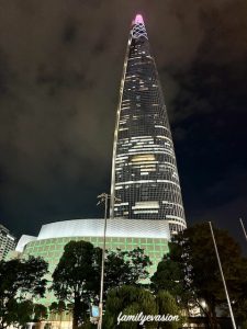 De jour comme de nuit, l’immense tour de télécommunications surplombe une mosaïque de toits, de temples ou de gratte-ciel colorés ou électrisés en nocturne.